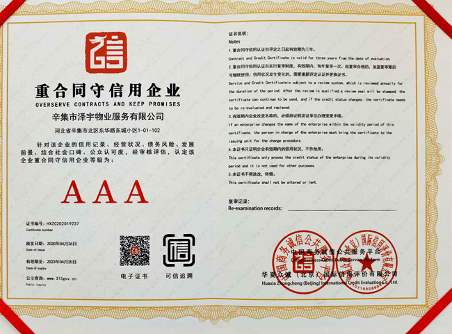 企業(yè)信用評價(jià)AAA級信用企業(yè) |